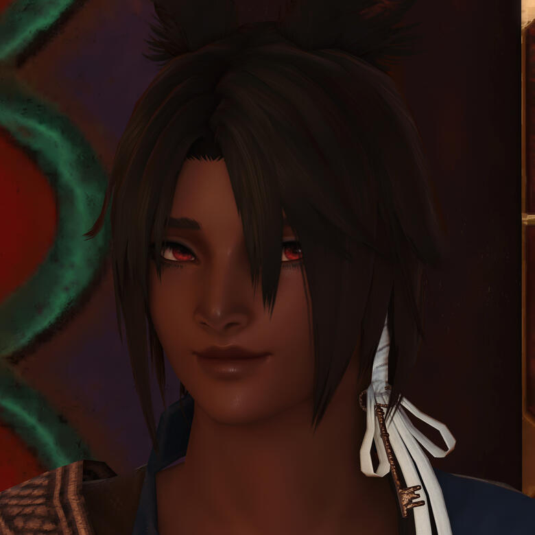 Before becoming the warrior they’re known as today, Rodha was born in the Golmore Jungle as Rodha Ljanta, child of Yara and younger sibling to Tyri. The first nine years of their life were spent peacefully there, unaware of the Garlean Empire and the growing tension between their mother and their village because of differing views on how to deal with said empire. One night, that peace was shattered when an injured member of the Damalscan resistance stumbled into Ljanta Village. While the others wanted to send her away, Yara chose to take her in and offer aid—a decision that would lead to her being cast out.Since they were only kits, Rodha and Tyri were given the option to stay in the village with the rest of their people, but chose to stand by their mother, who, with the help of that resistance member, was able to find a boat that would take them out of Dalmasca. They spent quite some time at sea on several ships, and eventually, their travels led them to Ul'dah. With how different the city-state and its people were compared to everything they knew in the Golmore Jungle, Rodha was more than wary of the decision. Still, Yara was able to find work and provide for them because of her skill with a lance, and in time, Ul'dah became home.As they grew up, their mother joined the Adventurer's Guild, where she met her future wife, the bard Dorielle Lynn, while Tyri followed in her footsteps. Rodha, who was still young and had no desire to fight, took an interest in the arts, mainly weaving and music. They continued honing their skills and joined the Weavers' Guild when they were old enough, hoping that the time they spent there would help them become a renowned designer, though, that quickly changed once the Calamity struck. Her family went to join the others at Carteneau, but only Dorielle and Yara returned from the battle, both heavily injured, and Tyri was presumed dead, like many others who disappeared there. Despite the healer's best efforts, Yara and Dorielle eventually succumbed to their wounds — leaving Rodha to deal with the pain of all their losses. In mourning, Rodha loses their passion and gives up that hope, only choosing to keep at it for the sake of making gil while they try not to become lost to grief.In an effort to escape the feeling, and their sense of aimlessness, Rodha decided to leave Ul'dah in pursuit of the Lancer's Guild in Gridania, wanting to become at least half as skilled as their mother was. Despite its beauty, Gridania is...not what they thought it'd be. Still, they didn't let this deter them and spent the next three years training and adventuring — honing their skills as a lancer and picking up conjury as a necessity after a chance encounter with the Ice Elemental. After the incident with Foulques, who they befriended in the early years of their training, Rodha decided they've had enough and finally left the Lancer's Guild, but not without reluctantly accepting Ywain's last request of seeking out Alberic.Even with all the research they did beforehand, Rodha found themself unprepared for the violent snowstorm that greeted them when they made it to Coerthas and would've become lost to it if not for coming across Alberic himself. He guided them back to the Observatorium, where they were able to warm up and meet his former pupil and current Azure Dragoon, Estinien. Nidhogg's Eye resonated with Rodha during the visit, which greatly confused all of them, though led to Alberic offering to train them. Much to Estinien's dismay, they accepted the offer and spent the next two years in Coerthas and Ishgard by extension.When they left Coerthas, Rodha decided to finally return to Ul'dah after all these years, but their plans shifted when they stumbled upon a Lalafell and a Hyur man being attacked by a voidsent. After helping them out, they discovered a strange crystal and heard Hydaelyn's call again, the voice and the vision leaving them shaken in a way they hadn't experienced since they were young. A week passed by before they ran into the Hyur man, Thancred, again — the aftermath of this encounter leading to them joining the Scions of The Seventh Dawn.